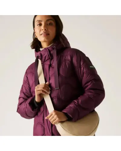 Női télikabát, Női meleg, pehelymentes télikabát – stílusos védelem a hideg ellen, Ez a prémium női télikabát a melegséget, kényelmet és fenntarthatóságot ötvözi egy modern szabású, nőies dizájnban. A könnyû, vízlepergető poliészter külső és a 280g-os, pehelyhatású újrahasznosított szigetelés gondoskodik a maximális hőtartásról, miközben nem terheli a környezetet., A karcsúsítható, húzózsinóros derékrész és a kétirányú cipzár nemcsak stílusos megjelenést, de praktikus viseletet is biztosít. A belső cipzáras zseb, a kapucniba integrált dizájn húzózsinór, valamint a 2 rejtett cipzáras zseb megkönnyítik a mindennapi használatot. A kabát újrahasznosított anyagokból készült, így remek választás a tudatos vásárlóknak is., 100% poliészter külső anyag (62 g/m?) vízlepergető kezeléssel, 280 g-os pehelymentes, újrahasznosított szintetikus töltet, Belső bélés: 100% poliamid könnyû 20d anyag (37 g/m?), Állítható kapucni dekoratív húzózsinórral, Belső cipzáras biztonsági zseb, 2 alsó cipzáras zseb, Kétirányú elülső cipzár, Állítható derék húzózsinórral, Újrahasznosított anyagok felhasználásával készült, Pehelymentes, extra meleg kabát hideg napokra, Fenntartható döntés – kompromisszumok nélkül