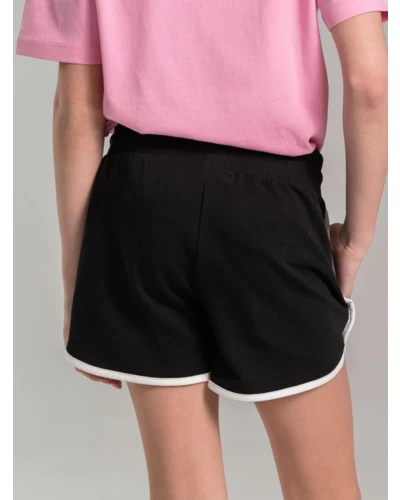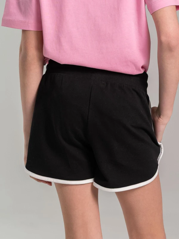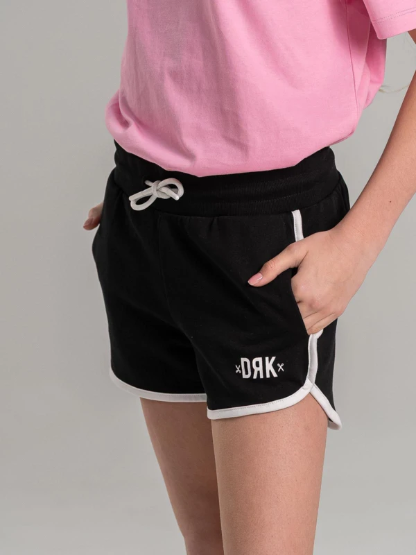 Retró báj a kis örökmozgóknak. - Itt az ideje egy kis időutazásnak. Az EMMA rövidnadrág a klasszikus retró vibe-ot képviseli: kontrasztos szegélyei a 80-as évek divatját tükrözik. A 100% pamut anyag gondoskodik a puhaságról, a gumis, fûzős derék pedig akkor is a helyén tartja a nadrágot, ha futni kell a labda vagy épp a busz után. A visszafogott DORKO logó pedig már csak hab a tortán. - Nosztalgikus külső, korszerû kényelem. Az EMMA shortban minden megy.