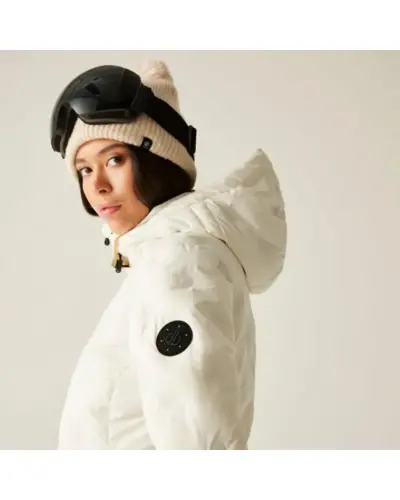 Női prémium síkabát 10.000, Prémium női sídzseki Ared 10 000, vízálló, újrahasznosított anyagból, Ez a prémium női sídzseki Ared 10 000 technológiával készült, amely 10 000 mm vízállóságot és kiváló légáteresztést biztosít. Újrahasznosított anyagból és magas hőszigetelésû béléssel készült, így maximális meleget és védelmet nyújt a téli sportok során. Swarovski kristályos díszítése és a hőhegesztett dizájn részletek elegáns, modern megjelenést kölcsönöznek., Újrahasznosított, vízálló szövet Ared 10 000 technológia (10 000 mm), Tartós vízlepergető felületkezelés, Teljes sífunkciós kialakítás: síbérlet-zseb, fix hófogó, Swarovski kristályos jelvények és cipzárhúzók, Hőhegesztett dizájn részletek, Újrahasznosított, magas hőszigetelésû bélés, Levehető, állítható kapucni, Puha polár gallérbélés a fokozott kényelemért, Meleg belső ujjmandzsetták, Kopásálló, tartós anyag, PFC-, PFOA-, PFOS-mentes környezetbarát kivitel, Ajánlott: női sídzseki síeléshez, snowboardozáshoz és téli sportokhoz, ahol a technikai védelem és a stílus egyaránt fontos.