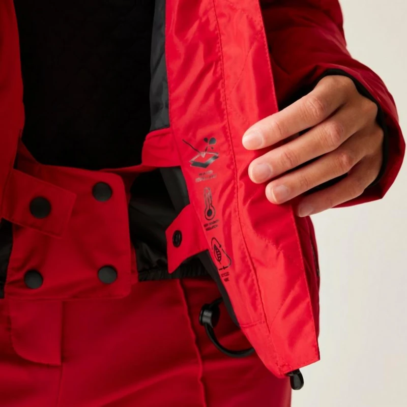 Női prémium síkabát 10.000, Prémium női sídzseki Ared 10 000, vízálló, újrahasznosított anyagból, Ez a prémium női sídzseki Ared 10 000 technológiával készült, amely 10 000 mm vízállóságot és kiváló légáteresztést biztosít. Újrahasznosított anyagból és magas hőszigetelésû béléssel készült, így maximális meleget és védelmet nyújt a téli sportok során. Swarovski kristályos díszítése és a hőhegesztett dizájn részletek elegáns, modern megjelenést kölcsönöznek., Újrahasznosított, vízálló szövet Ared 10 000 technológia (10 000 mm), Tartós vízlepergető felületkezelés, Teljes sífunkciós kialakítás: síbérlet-zseb, fix hófogó, Swarovski kristályos jelvények és cipzárhúzók, Hőhegesztett dizájn részletek, Újrahasznosított, magas hőszigetelésû bélés, Levehető, állítható kapucni, Puha polár gallérbélés a fokozott kényelemért, Meleg belső ujjmandzsetták, Kopásálló, tartós anyag, PFC-, PFOA-, PFOS-mentes környezetbarát kivitel, Ajánlott: női sídzseki síeléshez, snowboardozáshoz és téli sportokhoz, ahol a technikai védelem és a stílus egyaránt fontos.