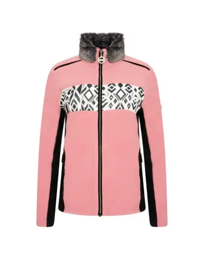 Női felső, Szálcsiszolt kötött hatású poliészter polár nyomott mintával, Levehető mûszőrme gallér (a könnyû mosást teszi lehetővé), Fém kiegészítő és kristályokkal díszített cipzárlehúzók, Fém hatású középső elülső cipzár belső cipzárral és állvédővel, 2 x alsó zseb fém hatású cipzárral