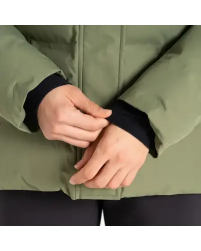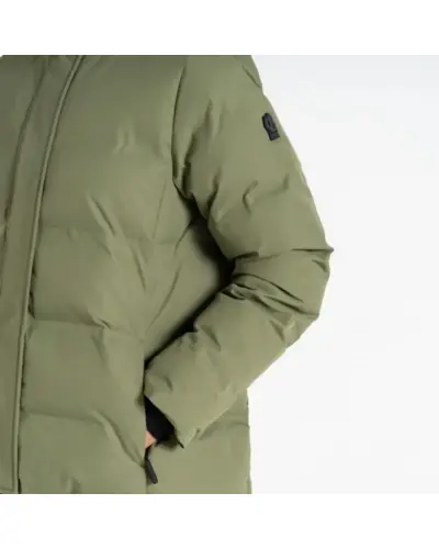 Női kabát 10000 vízálló, Anyag: Újrahasznosított vízálló és lélegző rugalmas szövet (ARED 10/10), Vízállóság/Lélegzőképesség: 10,000 mm vízállóság, 10,000 g/m?/24h lélegzőképesség, Felületkezelés: Tartós víztaszító bevonat, Környezetbarát: PFC, PFOA, PFOS mentes anyag, Töltet: Újrahasznosított, magas melegséget biztosító töltet (iLoft Ecofill), Design: Hővel rögzített steppelt kialakítás, Kapucni: Fix (grown on) kapucni, Cipzár:, Középső cipzár viharvédő hajtókával, Mandzsetta:, Meleg belső ujjmandzsetta, Bolyhos lycra mandzsetta a kényelemért, Zsebek: 2 alsó, cipzáros zseb, Bélés: Újrahasznosított poliészter bélés, Ez a kabát ARED 10/10 anyagból készült, amely kiváló vízállóságot és lélegzőképességet biztosít, így ideális választás hideg és nedves időjárási körülmények között. A tartós víztaszító bevonat és az iLoft Ecofill újrahasznosított töltet magas melegséget nyújt, míg a hővel rögzített steppelt kialakítás modern és funkcionális megjelenést biztosít. A fix kapucni, a középső cipzár viharvédő hajtókával, valamint a meleg belső ujjmandzsetta és a bolyhos lycra mandzsetta extra kényelmet és védelmet nyújtanak. A két alsó cipzáros zseb praktikus tárolási lehetőséget kínál, míg az újrahasznosított poliészter bélés tovább fokozza a kabát fenntarthatóságát és kényelmét.