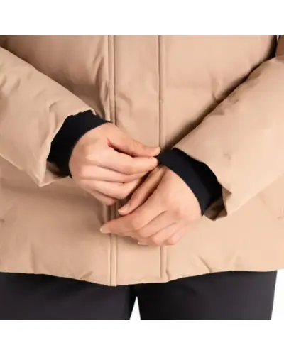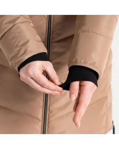 Női kabát 10000 vízálló, Anyag: Újrahasznosított vízálló és lélegző rugalmas szövet (ARED 10/10), Vízállóság/Lélegzőképesség: 10,000 mm vízállóság, 10,000 g/m?/24h lélegzőképesség, Felületkezelés: Tartós víztaszító bevonat, Környezetbarát: PFC, PFOA, PFOS mentes anyag, Töltet: Újrahasznosított, magas melegséget biztosító töltet (iLoft Ecofill), Design: Hővel rögzített steppelt kialakítás, Kapucni: Fix (grown on) kapucni, Cipzár:, Középső cipzár viharvédő hajtókával, Mandzsetta:, Meleg belső ujjmandzsetta, Bolyhos lycra mandzsetta a kényelemért, Zsebek: 2 alsó, cipzáros zseb, Bélés: Újrahasznosított poliészter bélés, Ez a kabát ARED 10/10 anyagból készült, amely kiváló vízállóságot és lélegzőképességet biztosít, így ideális választás hideg és nedves időjárási körülmények között. A tartós víztaszító bevonat és az iLoft Ecofill újrahasznosított töltet magas melegséget nyújt, míg a hővel rögzített steppelt kialakítás modern és funkcionális megjelenést biztosít. A fix kapucni, a középső cipzár viharvédő hajtókával, valamint a meleg belső ujjmandzsetta és a bolyhos lycra mandzsetta extra kényelmet és védelmet nyújtanak. A két alsó cipzáros zseb praktikus tárolási lehetőséget kínál, míg az újrahasznosított poliészter bélés tovább fokozza a kabát fenntarthatóságát és kényelmét.