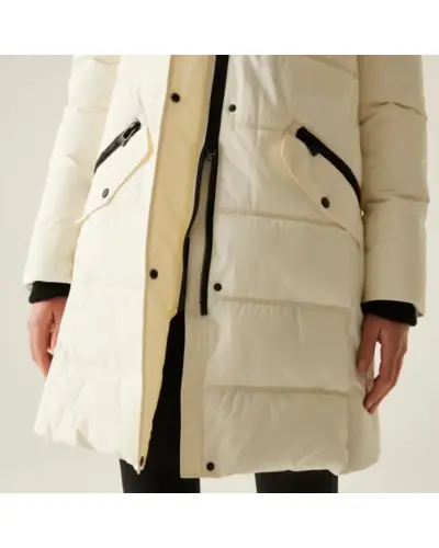 Női steppelt télikabát, Női meleg télikabát stílus, kényelem és megbízható védelem a hideg ellen, Ez a nőies szabású, modern télikabát tökéletes társ a hideg téli napokon. A 230 g-os újrahasznosított, pehelymentes szigetelés és a bolyhos polár bélésû kapucni gondoskodik a kiváló hőérzetről, míg a strapabíró, vízlepergető külső anyag a váratlan csapadék ellen is védelmet nyújt. A részletgazdag kialakítás mint a bordázott gallér és a díszítő húzózsinór eleganciát és praktikusságot kínál egyszerre., Külső anyag: 100% poliészter 112 g/m?, Tartós vízlepergető bevonat, Feather-free prémium újrahasznosított szigetelés 230 g/m?, Könnyû, 20d poliamid bélés 37 g/m?, 2 belső biztonsági zseb, Levehető kapucni puha polár béléssel, Dekoratív húzózsinóros részlet a kapucninál, Kétirányú elülső cipzár a maximális mozgásszabadságért, 2 alsó patch zseb dupla cipzáras kézmelegítő nyílással, Kifinomult részletek:, Bordázott gallér és mandzsetták a meleg zárásért, Kontrasztos bélés az ujjaknál és zsebeknél elegáns megjelenés, Fenntartható gyártás újrahasznosított alapanyagokból, Ajánlott: hûvös téli napokra, városi viseletre vagy hétköznapi eleganciához, Kiemelkedő kényelem, nőies vonalvezetés, praktikus kialakítás.