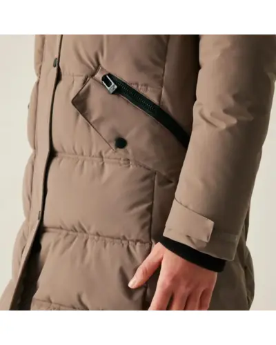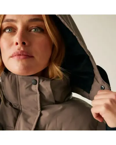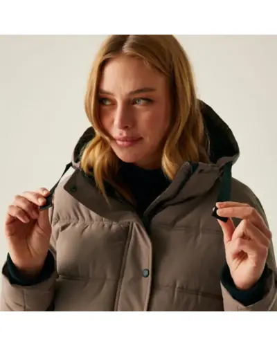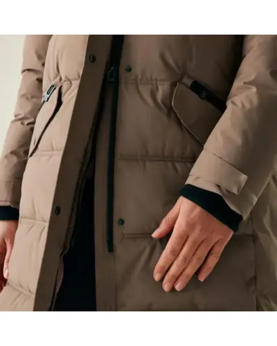 Női steppelt télikabát, Női meleg télikabát stílus, kényelem és megbízható védelem a hideg ellen, Ez a nőies szabású, modern télikabát tökéletes társ a hideg téli napokon. A 230 g-os újrahasznosított, pehelymentes szigetelés és a bolyhos polár bélésû kapucni gondoskodik a kiváló hőérzetről, míg a strapabíró, vízlepergető külső anyag a váratlan csapadék ellen is védelmet nyújt. A részletgazdag kialakítás mint a bordázott gallér és a díszítő húzózsinór eleganciát és praktikusságot kínál egyszerre., Külső anyag: 100% poliészter 112 g/m?, Tartós vízlepergető bevonat, Feather-free prémium újrahasznosított szigetelés 230 g/m?, Könnyû, 20d poliamid bélés 37 g/m?, 2 belső biztonsági zseb, Levehető kapucni puha polár béléssel, Dekoratív húzózsinóros részlet a kapucninál, Kétirányú elülső cipzár a maximális mozgásszabadságért, 2 alsó patch zseb dupla cipzáras kézmelegítő nyílással, Kifinomult részletek:, Bordázott gallér és mandzsetták a meleg zárásért, Kontrasztos bélés az ujjaknál és zsebeknél elegáns megjelenés, Fenntartható gyártás újrahasznosított alapanyagokból, Ajánlott: hûvös téli napokra, városi viseletre vagy hétköznapi eleganciához, Kiemelkedő kényelem, nőies vonalvezetés, praktikus kialakítás.