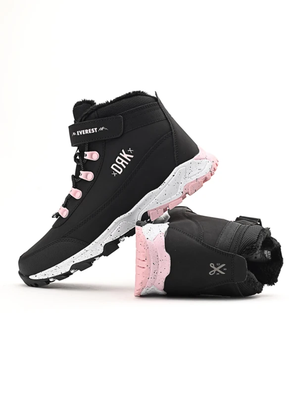 Az EVEREST család legújabb tagja a Junior változat, amely kifejezetten gyerekek számára készült.\x0d\x0aA tépőzáras és gumifűzős megoldás nemcsak praktikus és gyors felvételt tesz lehetővé, de biztos tartást is ad a lábnak. A megerősített talp, a párnázott szár és a kényelmes bélés gondoskodnak a stabilitásról és a melegen tartásról még a hideg téli napokon is. Számos színváltozatban érhető el - hogy minden gyerek megtalálja a kedvencét.