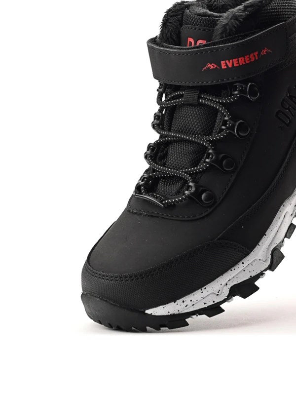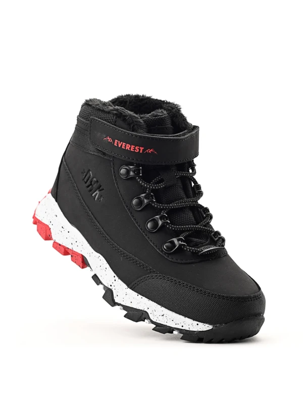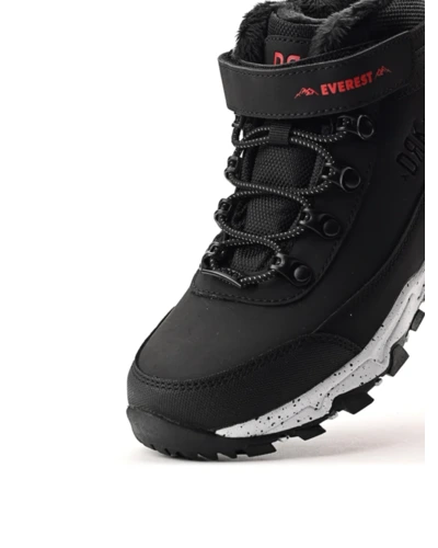 Az EVEREST család legújabb tagja a Junior változat, amely kifejezetten gyerekek számára készült.\x0d\x0aA tépőzáras és gumifűzős megoldás nemcsak praktikus és gyors felvételt tesz lehetővé, de biztos tartást is ad a lábnak. A megerősített talp, a párnázott szár és a kényelmes bélés gondoskodnak a stabilitásról és a melegen tartásról még a hideg téli napokon is. Számos színváltozatban érhető el - hogy minden gyerek megtalálja a kedvencét.