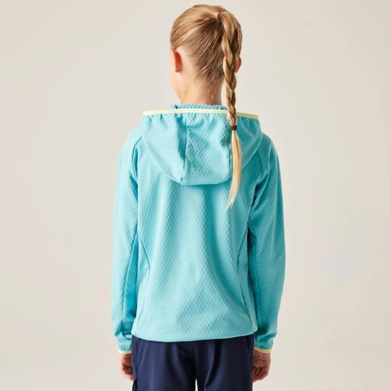 Gyerek polár felső, Prémium gyerek polár pulóver – 100% újrahasznosított poliészter, hőtartó technológiával, Ez a gyerek polár felső 100% újrahasznosított poliészterből készült, zigzag mintázatú anyagszerkezettel. A hőtartó technikai szövet hatékonyan csökkenti a hőveszteséget, így biztosítja az optimális komfortérzetet hûvösebb időben, miközben könnyû és jól rétegezhető kialakítást kínál., Főbb jellemzők:, 100% újrahasznosított poliészter polár anyag zigzag struktúrával, Hőtartó technikai szövet a hőveszteség minimalizálására, 2 alsó cipzáras zseb, Teljes hosszúságú cipzár belső szélvédővel és állvédővel, Rugalmas szegély a mandzsettán és az alsó részen a jobb illeszkedésért, Fényvisszaverő cipzárhúzók a fokozott láthatóság érdekében, Ajánlott:, Iskolába, kiránduláshoz, sportoláshoz és mindennapi szabadtéri viselethez. Ideális középrétegként kabát alá vagy önálló felsőként enyhébb, hûvös időben., Fenntarthatóság:, 100% újrahasznosított poliészter felhasználásával készült, amely csökkenti a környezeti terhelést, miközben megbízható hőszigetelést és tartósságot biztosít.