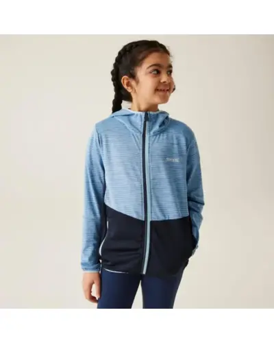 Gyerek polár felső, kötött sztreccs poliészter polár, fix kapucni, rugalmas szegélyek, Teljes hosszúságú cipzár, Belső cipzár és állvédő, 2 cipzáras alsó zseb