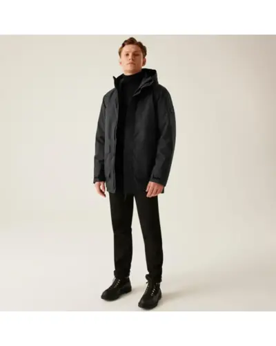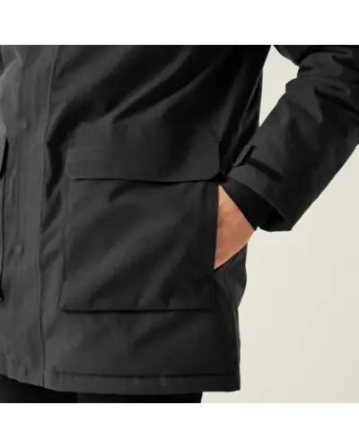Férfi vastagabb bélelt vízálló kabát 10.000 mmm, Ez a vízálló és lélegző újrahasznosított Isotex 10000 anyagból készült kabát ideális választás , hideg és nedves időjárási körülményekhez., Anyag: Vízálló és lélegző Isotex 10000 100% poliészter, gyapjú hatású anyagból márvány mintás, Lélegzőképesség: 10,000g/m?/24 óra , Vízállóság: Tartós víztaszító bevonat., Varrott varrások: Teljes vízállóságot biztosítanak., Szigetelés: Közepes súlyú Feather Free prémium újrahasznosított szintetikus pehelyszigetelés., Bélés: Poliamid bélés és béléspanelek a hőszigetelés érdekében., Belső cipzáras biztonsági zseb, 2 alsó nagy zseb oldalsó kézmelegítő zsebekkel, Kapucni: Integrált kapucni rejtett állítókkal., Mandzsetták: Állítható mandzsetták., Ez a kabát ideális választás bárki számára, aki meleg, kényelmes és környezetbarát megoldást , keres a hideg és esős időjárásban történő szabadtéri tevékenységekhez.