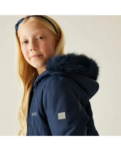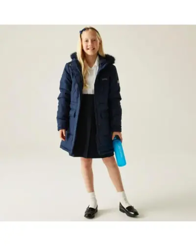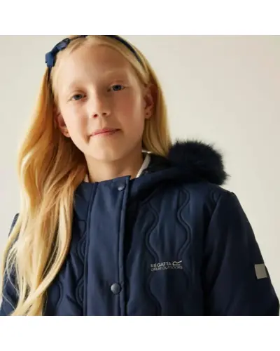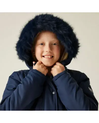 Gyerek bélelt kabát, Gyerek vízlepergető, Thermoguard bélelt kabát mûszőrme kapucnival – meleg és biztonság hidegebb napokra, Ez a mikro poplin anyagú, vízlepergető kabát ideális választás a hûvösebb, szeles vagy nedves időjárásban. A Thermoguard szigetelés könnyû, mégis hatékony meleget biztosít, míg a puha mûszőrme szegélyû kapucni extra komfortot és stílust nyújt. A fényvisszaverő részletek gondoskodnak a gyerek láthatóságáról gyenge fényviszonyok között., Anyag: 100% poliészter mikro poplin – 84 g/m?, Vízlepergető felületkezelés, Thermoguard szigetelés – 200 g/m? (újrahasznosított anyagból), 100% poliészter taft bélés a kényelmes viseletért, Rögzített kapucni levehető mûszőrme szegéllyel, Kétirányú elülső cipzár, 2 cipzáras alsó zseb, Rugalmas mandzsetták a szél kizárására, Fényvisszaverő részletek a biztonságért, Nyomtatott névcímke (8 éves korig), Újrahasznosított anyagból készült – környezettudatos választás, Stílusos, meleg és praktikus – tökéletes mindennapi kabát iskolába, játszótérre vagy családi kirándulásokhoz.