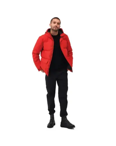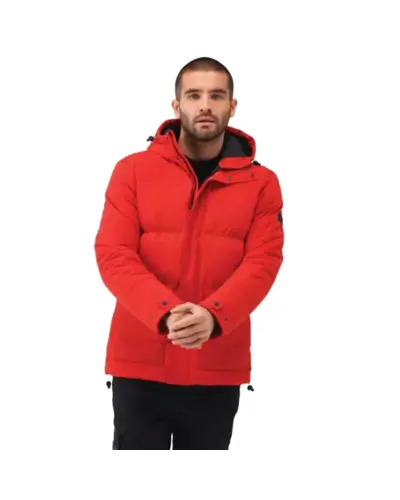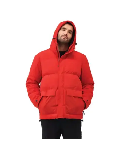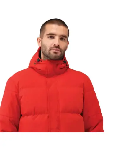 Férfi vastag kabát, Újrahasznosított 100% poliészter vízlepergető mikrotaslan, Tartós vízlepergető felület, Feather Free – prémium minőségû újrahasznosított szintetikus pehelyszigetelés, Nehézsúlyú töltet, Poliamid bélés, Belső zseb, fix, állítható kapucni, 2 alsó zseb kettős cipzáras kézmelegítő bemenettel, húzózsinórral állítható szegély