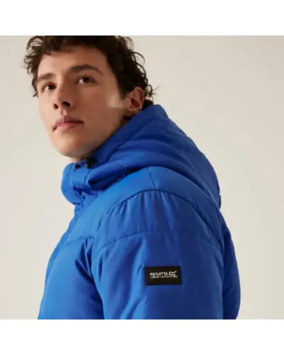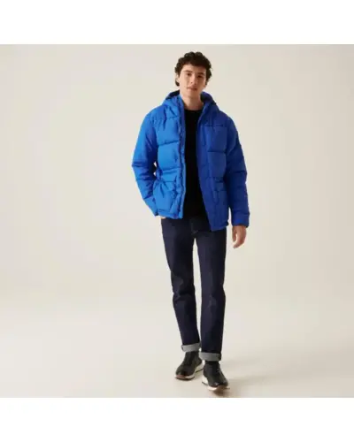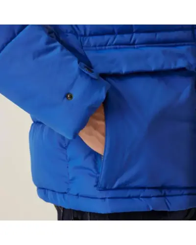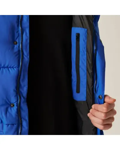 Férfi vastag kabát, Újrahasznosított 100% poliészter vízlepergető mikrotaslan, Tartós vízlepergető felület, Feather Free – prémium minőségû újrahasznosított szintetikus pehelyszigetelés, Nehézsúlyú töltet, Poliamid bélés, Belső zseb, fix, állítható kapucni, 2 alsó zseb kettős cipzáras kézmelegítő bemenettel, húzózsinórral állítható szegély