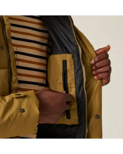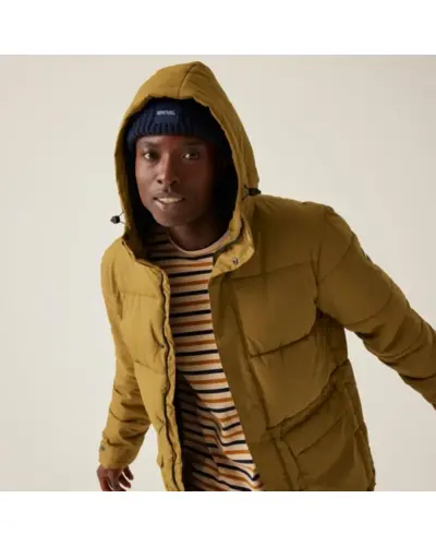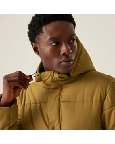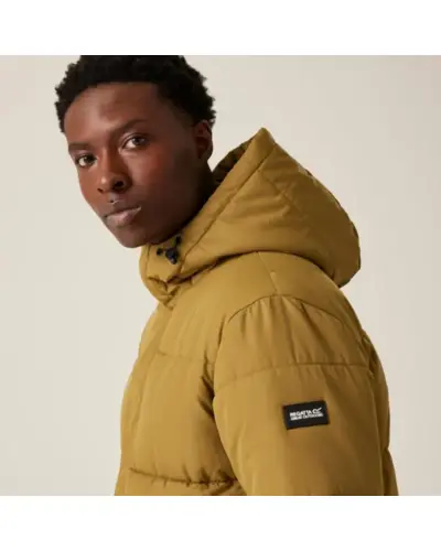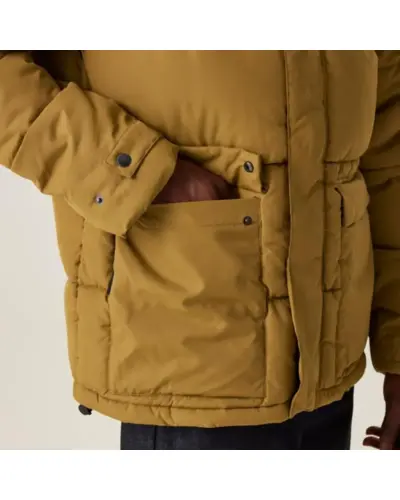 Férfi vastag kabát, Újrahasznosított 100% poliészter vízlepergető mikrotaslan, Tartós vízlepergető felület, Feather Free – prémium minőségû újrahasznosított szintetikus pehelyszigetelés, Nehézsúlyú töltet, Poliamid bélés, Belső zseb, fix, állítható kapucni, 2 alsó zseb kettős cipzáras kézmelegítő bemenettel, húzózsinórral állítható szegély