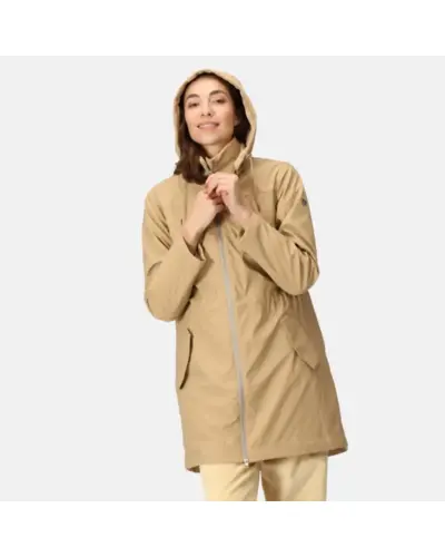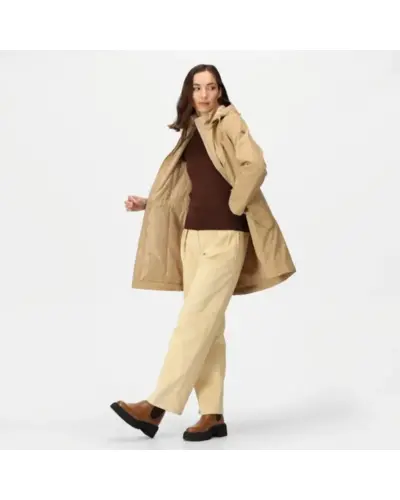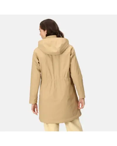 Női bélelt kabát, 100% poliészter PU anyag, Tartós vízlepergető felület, 100%-ban újrahasznosított Thermoguard szigetelő töltet, 100% poliészter taft bélés, fix kapucni, mûszőrme hátmelegítő, 2 alsó zseb , Állítható húzózsinóros derékrész, Állítható mandzsetta
