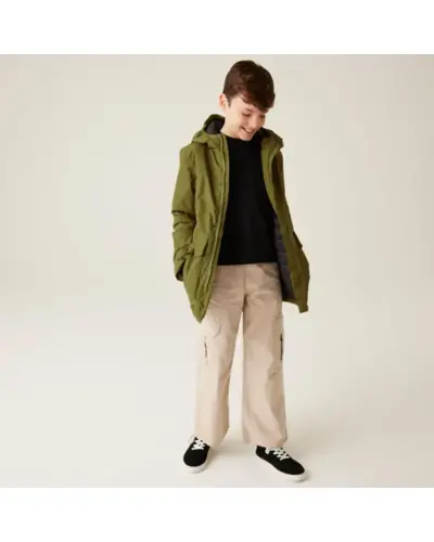 Gyerek télikabát, Vízálló és lélegző Isotex, 5000 újrahasznosított 100% poliészter anyag, Légáteresztő képesség 5000 g/m?/24 óra, Tartós vízlepergető felület, Újrahasznosított szintetikus Warmloft pehely utánzatú töltet, Ragasztott varratok a teljes vízállóságért, Könnyû 20d poliamid anyag, Kényelmes bélés, steppelt belső kialakítás, fix kapucni, steppelt belsővel, 2 alsó zsebbel, Állítható mandzsetta