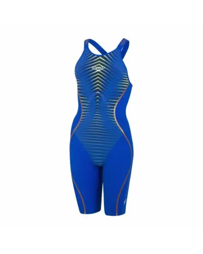 Érezze magát megállíthatatlanul a Speedo legújabb versenyúszóját viselve, amelyet úszók fejlesztettek ki az úszók számára. A feltûnő Fastskin LZR Pure Intent ?Electric Strike? nyílt hát kialakítású, kétrétegû, összenyomható és ergonomikus varráskonstrukcióval rendelkezik, amely a kulcsfontosságú izomcsoportok összekapcsolására szolgál a nagyobb erővisszaadás érdekében. A texturált szövetzónák a légellenállás csökkentését célozzák, így a legjobbat hozhatja ki az úszásból, a hármas szövetszerkezetet pedig ragasztott varrással úgy tervezték, hogy nagyobb mozgást tegyen lehetővé. A nyitott hátrész nagyobb mozgásszabadságot biztosít, és az ívelt hátú úszók számára előnyös lehet.