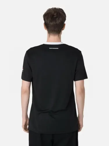 Stílusos és letisztult megjelenésû V-nyakú póló 100% poliészter anyagból. Könnyen száradó, légáteresztő anyagának köszönhetően rendkívül kényelmes viseletet biztosít. Mellrészén elegáns címer és márkajelzés, ujján zászló, hátul diszkrét MAGYARORSZÁG felirat kapott helyet.