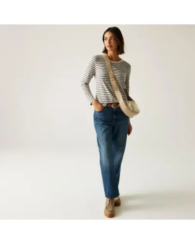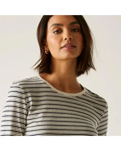 Női póló, Női BCI pamut–poliészter póló – könnyed stílus, természetes kényelem, Ez a fonalfestett, single jersey póló (155 g/m?) a BCI pamut és poliészter keverékének köszönhetően puha tapintású, légáteresztő és formatartó. A klasszikus kerek nyakkivágás időtlen megjelenést ad, míg az oldalhasítékok extra mozgásszabadságot biztosítanak., Anyag: 60% BCI pamut / 40% poliészter, fonalfestett single jersey – 155 g/m?, Klasszikus kerek nyakkivágás, Oldalhasíték a szegélyen a kényelmes mozgásért, ? Ajánlott: mindennapi viselethez, réteges öltözködéshez vagy nyári szabadidős programokhoz, ?? Puha, könnyû és környezettudatos – stílusos alapdarab minden ruhatárban
