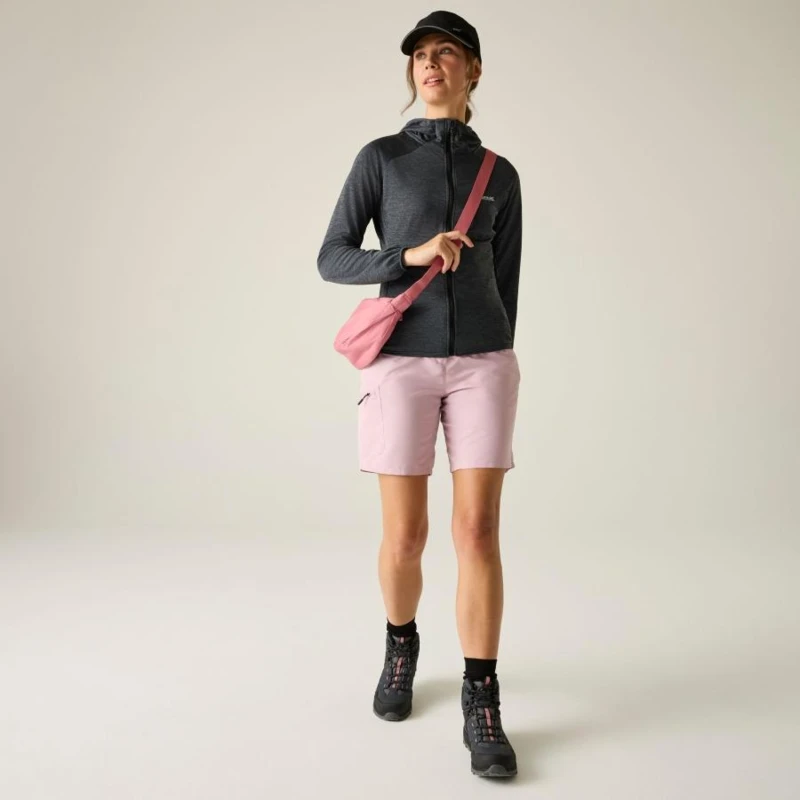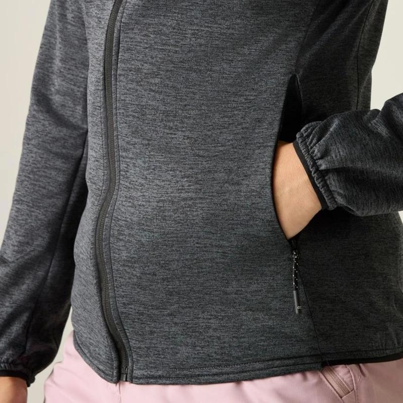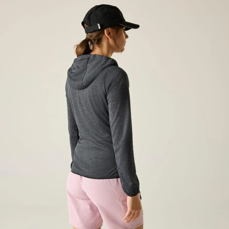 Női felső, Prémium női könnyû kapucnis felső – marl stretch anyag, hálós hátoldal, 160 g/m?, Ez a női könnyû technikai felső 100% poliészter marl stretch anyagból készült, 160 g/m? súlyban, hálós hátoldali kialakítással. A rugalmas, légáteresztő szövet kényelmes mozgásszabadságot és megfelelő szellőzést biztosít aktív használat során. A sportos szabás és a praktikus cipzáras zsebek ideálissá teszik mindennapi és outdoor viseletre., Főbb jellemzők:, 100% poliészter marl stretch anyag hálós hátoldallal, 160 g/m?, Beépített kapucni, 2 alsó cipzáras zseb, Rugalmas szegély a mandzsettán és az alsó részen, Ajánlott: Női kapucnis felsőként ideális túrázáshoz, kiránduláshoz, utazáshoz és hétköznapi aktív viselethez. Kiváló választás átmeneti időszakban vagy könnyû rétegként hûvösebb napokon., Fenntarthatóság: A tartós poliészter alapanyag hosszú élettartamot biztosít, csökkentve a gyakori ruhacsere szükségességét. A minőségi kivitel több szezonon át megbízható viseletet garantál.