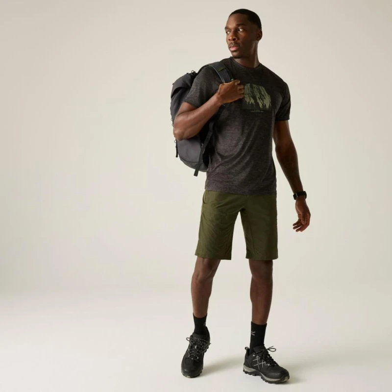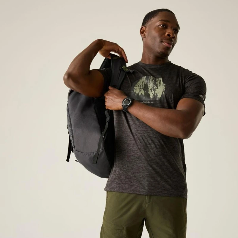 Férfi póló, Technikai póló 100% poliészterből – gyorsan száradó, grafikai mintával, Ez a könnyû, 100% poliészter piqué anyagból készült technikai póló (135 g/m?) rugalmas és jól szellőző, ideális aktív használatra. A 100% poliészter gyorsan száradó marl jersey betétek (100 g/m?) tovább fokozzák a légáteresztést és a komfortérzetet. A technikai szövet hatékony nedvességelvezető képességgel és gyors száradási tulajdonsággal rendelkezik. A pólót stílusos grafikai nyomat egészíti ki, így sportos és modern megjelenést biztosít., 100% poliészter piqué anyag – 135 g/m?, 100% gyorsan száradó poliészter marl jersey betétek – 100 g/m?, Jó nedvességelvezető teljesítmény, Gyorsan száradó technikai szövet, Légáteresztő, kényelmes viselet, Ajánlott:, Futáshoz, túrázáshoz, edzéshez, kerékpározáshoz, kempingezéshez és minden olyan szabadtéri tevékenységhez, ahol fontos a könnyû, gyorsan száradó, légáteresztő technikai póló.