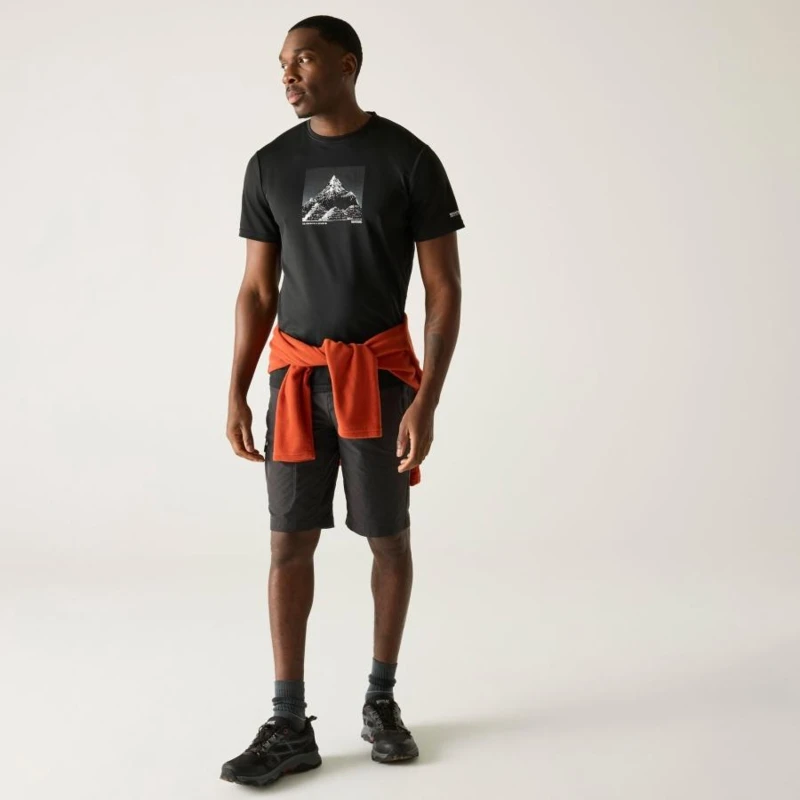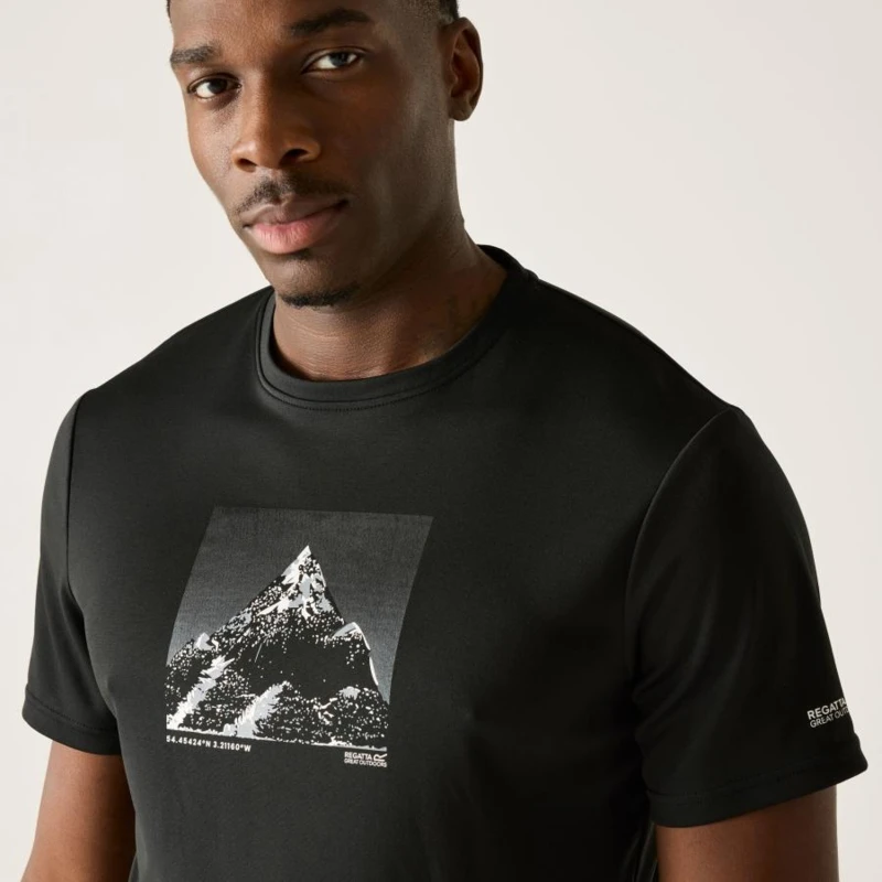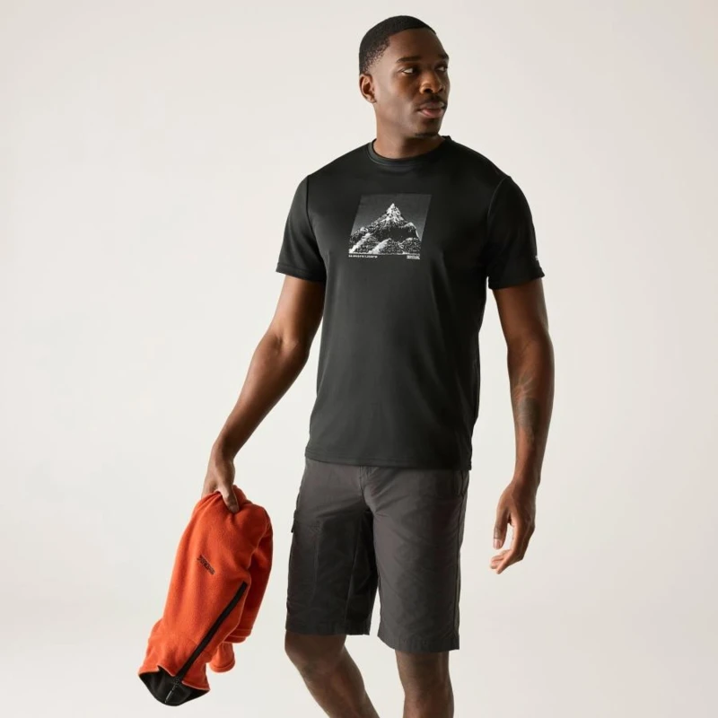 Férfi póló, Technikai póló 100% poliészterből – gyorsan száradó, grafikai mintával, Ez a könnyû, 100% poliészter piqué anyagból készült technikai póló (135 g/m?) rugalmas és jól szellőző, ideális aktív használatra. A 100% poliészter gyorsan száradó marl jersey betétek (100 g/m?) tovább fokozzák a légáteresztést és a komfortérzetet. A technikai szövet hatékony nedvességelvezető képességgel és gyors száradási tulajdonsággal rendelkezik. A pólót stílusos grafikai nyomat egészíti ki, így sportos és modern megjelenést biztosít., 100% poliészter piqué anyag – 135 g/m?, 100% gyorsan száradó poliészter marl jersey betétek – 100 g/m?, Jó nedvességelvezető teljesítmény, Gyorsan száradó technikai szövet, Légáteresztő, kényelmes viselet, Ajánlott:, Futáshoz, túrázáshoz, edzéshez, kerékpározáshoz, kempingezéshez és minden olyan szabadtéri tevékenységhez, ahol fontos a könnyû, gyorsan száradó, légáteresztő technikai póló.