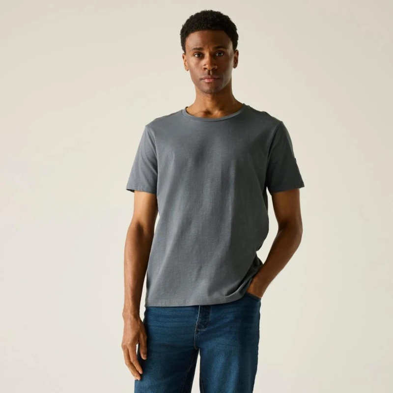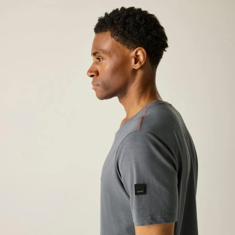 Férfi póló, Prémium férfi stretch pamut póló – slub single jersey, kényelmes szabás, UPF 50+ UV-védelem, Ez a férfi rövid ujjú póló 96% pamut / 4% elasztán összetételû, 200 g/m? súlyú single jersey slub anyagból készült. A vastagabb, mégis rugalmas pamutszövet kényelmes, formatartó viseletet biztosít, miközben a slub struktúra modern, enyhén texturált megjelenést ad. A letisztult szabás és a részletgazdag kidolgozás ideálissá teszi mindennapi és szabadidős használatra. Az UPF 50+ UV-védelem hatékonyan segít csökkenteni a napsugárzás káros hatásait., Főbb jellemzők:, 96% pamut / 4% elasztán single jersey slub anyag, 200 g/m?, Kényelmes, rugalmas konstrukció, Láncöltéses díszítővarrás, UPF 50+ UV-védelem, Ajánlott: Férfi pamut pólóként ideális mindennapi viselethez, utazáshoz, kiránduláshoz és nyári szabadtéri programokhoz. Kiváló választás melegebb időben, amikor fontos a komfort, a természetes tapintás és a tartósság., Fenntarthatóság: A magas pamuttartalmú, tartós anyag hosszú élettartamot biztosít. A minőségi kivitel csökkenti a gyakori ruhacsere szükségességét, mérsékelve a környezeti terhelést.