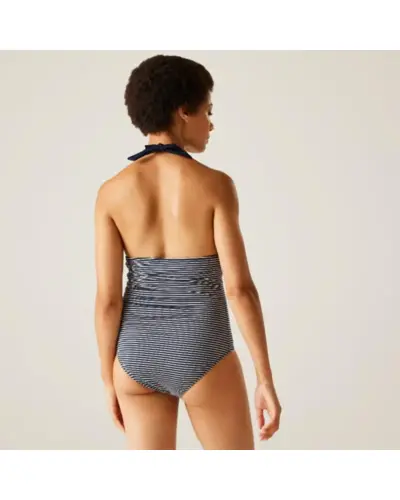 Női fürdőruha, Újrahasznosított 85% poliészter/15% elasztán anyag, szivacsos mervítő nélküli mellrész, húzott szabás a hasnál, UV-védelem (UPF) 50+, Fürdőruhákat higéniai okokból nem cserélünk és nem veszünk vissza.