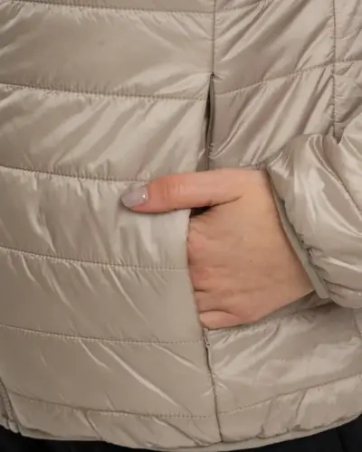 Extra könnyű, steppelt átmeneti kabát kapucnival és oldalsó belebújós zsebekkel. Anyaga: 100% nylon. Fedezd fel a kibővült színpalettát!
