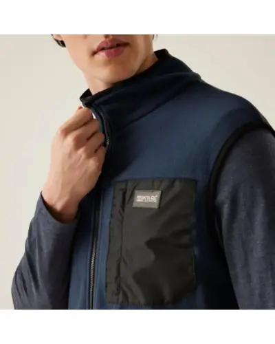 Férfi mellény, Ez az újrahasznosított anyagokból készült micro polár felső ideális választás kényelmes és , praktikus viselethez hûvös időjárási körülmények között., Anyag: 210 g/m? újrahasznosított 100% poliészter micro polár anyag., Mellzseb: Nylon kinézetû 100% poliészter cipzáras mellzseb., 2 alsó cipzáras zseb., Rugalmas szegély a gallérnál, karöltőnél és az alsó szegélynél a jobb illeszkedés érdekében., Ez a polár tökéletes választás azok számára, akik kényelmes, meleg és környezetbarát viseletet , keresnek hûvös időben történő szabadtéri tevékenységekhez.