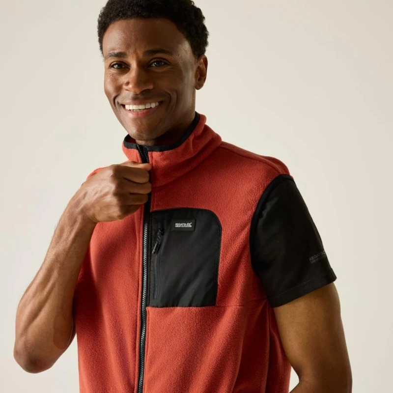 Férfi polár mellény, Prémium férfi hibrid polár mellény 210 g/m? micro fleece, micro poplin betétek, Ez a férfi technikai polár mellény 100% poliészter micro fleece anyagból készült, 210 g/m? súlyban, amelyet 100% poliészter micro poplin betétek egészítenek ki 84 g/m? súlyban. A puha polár kellemes hőszigetelést biztosít, míg a könnyû poplin panelek növelik a tartósságot és sportos megjelenést adnak. Ujjatlan kialakítása ideális rétegezéshez és aktív mozgáshoz., Főbb jellemzők:, 100% poliészter micro polár anyag, 210 g/m?, 100% poliészter micro poplin betétek, 84 g/m?, 1 cipzáras mellzseb, 2 alsó cipzáras zseb, Rugalmas szegély a gallérnál, a karöltőnél és az alsó részen, Ajánlott: Férfi polár mellényként ideális túrázáshoz, kiránduláshoz, utazáshoz és mindennapi outdoor viselethez. Kiváló középrétegként kabát alá hûvösebb időben, illetve önálló rétegként átmeneti időszakban., Fenntarthatóság: A tartós poliészter alapanyag és a megerősített poplin panelek hosszú élettartamot biztosítanak, csökkentve a gyakori ruhacsere szükségességét. A strapabíró konstrukció több szezonon át megbízható használatot garantál.