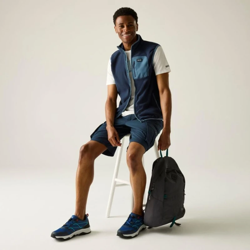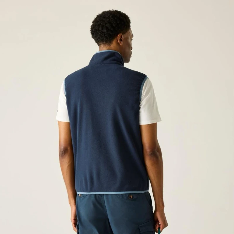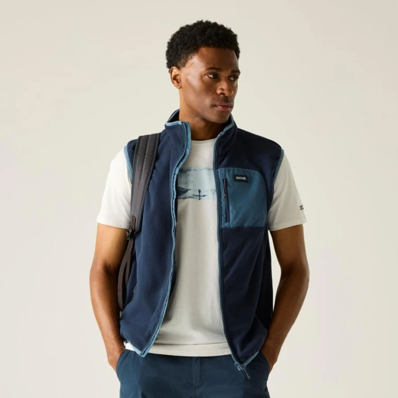 Férfi polár mellény, Prémium férfi hibrid polár mellény – 210 g/m? micro fleece, micro poplin betétek, Ez a férfi technikai polár mellény 100% poliészter micro fleece anyagból készült, 210 g/m? súlyban, amelyet 100% poliészter micro poplin betétek egészítenek ki 84 g/m? súlyban. A puha polár kellemes hőszigetelést biztosít, míg a könnyû poplin panelek növelik a tartósságot és sportos megjelenést adnak. Ujjatlan kialakítása ideális rétegezéshez és aktív mozgáshoz., Főbb jellemzők:, 100% poliészter micro polár anyag, 210 g/m?, 100% poliészter micro poplin betétek, 84 g/m?, 1 cipzáras mellzseb, 2 alsó cipzáras zseb, Rugalmas szegély a gallérnál, a karöltőnél és az alsó részen, Ajánlott: Férfi polár mellényként ideális túrázáshoz, kiránduláshoz, utazáshoz és mindennapi outdoor viselethez. Kiváló középrétegként kabát alá hûvösebb időben, illetve önálló rétegként átmeneti időszakban., Fenntarthatóság: A tartós poliészter alapanyag és a megerősített poplin panelek hosszú élettartamot biztosítanak, csökkentve a gyakori ruhacsere szükségességét. A strapabíró konstrukció több szezonon át megbízható használatot garantál.