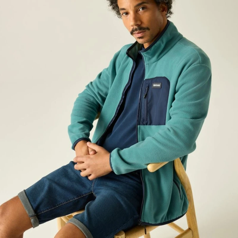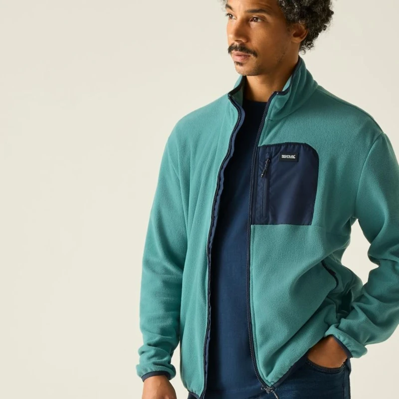 Férfi pulóver, Prémium férfi hibrid micro polár felső – 210 g/m? fleece, micro poplin betétek, technikai kialakítás, Ez a férfi technikai polár felső 100% poliészter micro fleece anyagból készült, 210 g/m? súlyban, amelyet 100% poliészter micro poplin betétek egészítenek ki 84 g/m? súlyban. A puha polár kellemes hőszigetelést biztosít, míg a könnyû poplin panelek fokozzák a tartósságot és a modern megjelenést. A cipzáras zsebek és a rugalmas szegélyezés praktikus és kényelmes viseletet nyújt aktív használat során., Főbb jellemzők:, 100% poliészter micro polár anyag, 210 g/m?, 100% poliészter micro poplin betétek, 84 g/m?, 1 cipzáras mellzseb, 2 alsó cipzáras zseb, Rugalmas szegély a gallérnál, a mandzsettán és az alsó részen, Ajánlott: Férfi technikai polár felsőként ideális túrázáshoz, trekkinghez, kiránduláshoz és mindennapi outdoor viselethez. Kiváló középréteg hûvösebb időben, illetve önálló rétegként átmeneti időszakban., Fenntarthatóság: A tartós poliészter alapanyag és a megerősített poplin panelek hosszú élettartamot biztosítanak, csökkentve a gyakori ruhacsere szükségességét. A strapabíró konstrukció több szezonon át megbízható használatot garantál.