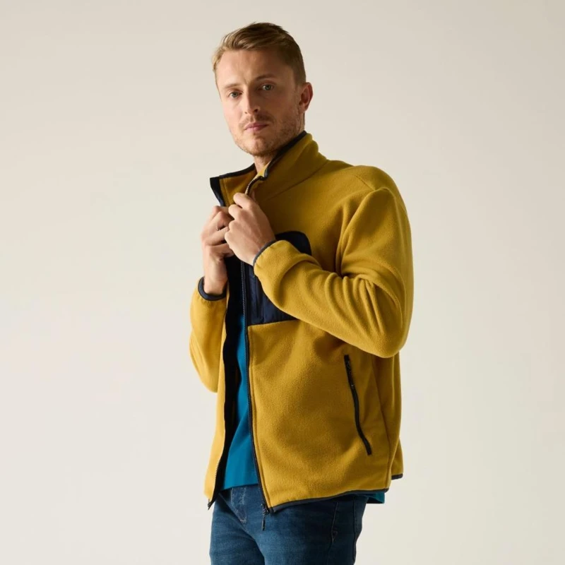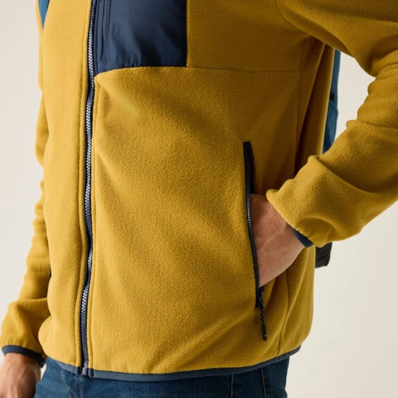 Férfi pulóver, Prémium férfi hibrid micro polár felső – 210 g/m? fleece, micro poplin betétek, technikai kialakítás, Ez a férfi technikai polár felső 100% poliészter micro fleece anyagból készült, 210 g/m? súlyban, amelyet 100% poliészter micro poplin betétek egészítenek ki 84 g/m? súlyban. A puha polár kellemes hőszigetelést biztosít, míg a könnyû poplin panelek fokozzák a tartósságot és a modern megjelenést. A cipzáras zsebek és a rugalmas szegélyezés praktikus és kényelmes viseletet nyújt aktív használat során., Főbb jellemzők:, 100% poliészter micro polár anyag, 210 g/m?, 100% poliészter micro poplin betétek, 84 g/m?, 1 cipzáras mellzseb, 2 alsó cipzáras zseb, Rugalmas szegély a gallérnál, a mandzsettán és az alsó részen, Ajánlott: Férfi technikai polár felsőként ideális túrázáshoz, trekkinghez, kiránduláshoz és mindennapi outdoor viselethez. Kiváló középréteg hûvösebb időben, illetve önálló rétegként átmeneti időszakban., Fenntarthatóság: A tartós poliészter alapanyag és a megerősített poplin panelek hosszú élettartamot biztosítanak, csökkentve a gyakori ruhacsere szükségességét. A strapabíró konstrukció több szezonon át megbízható használatot garantál.