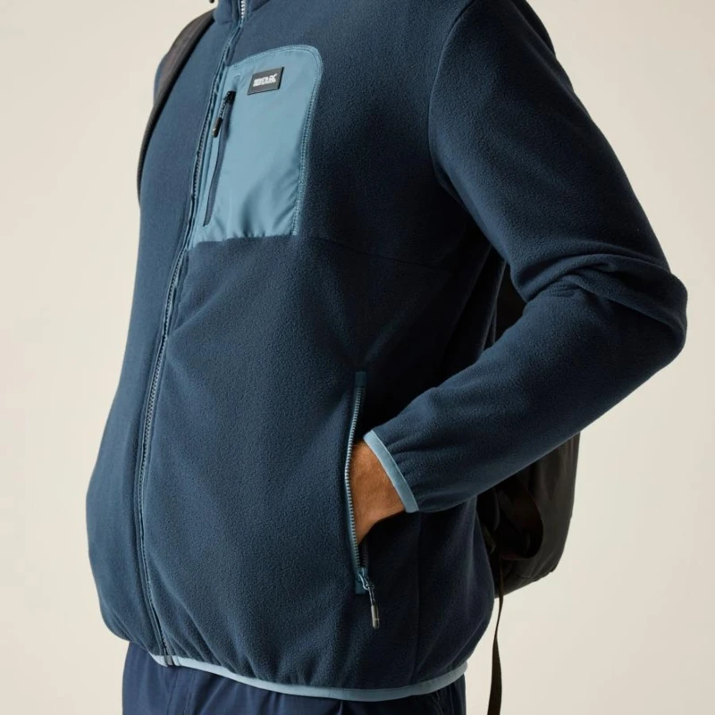 Férfi pulóver, Prémium férfi hibrid micro polár felső – 210 g/m? fleece, micro poplin betétek, technikai kialakítás, Ez a férfi technikai polár felső 100% poliészter micro fleece anyagból készült, 210 g/m? súlyban, amelyet 100% poliészter micro poplin betétek egészítenek ki 84 g/m? súlyban. A puha polár kellemes hőszigetelést biztosít, míg a könnyû poplin panelek fokozzák a tartósságot és a modern megjelenést. A cipzáras zsebek és a rugalmas szegélyezés praktikus és kényelmes viseletet nyújt aktív használat során., Főbb jellemzők:, 100% poliészter micro polár anyag, 210 g/m?, 100% poliészter micro poplin betétek, 84 g/m?, 1 cipzáras mellzseb, 2 alsó cipzáras zseb, Rugalmas szegély a gallérnál, a mandzsettán és az alsó részen, Ajánlott: Férfi technikai polár felsőként ideális túrázáshoz, trekkinghez, kiránduláshoz és mindennapi outdoor viselethez. Kiváló középréteg hûvösebb időben, illetve önálló rétegként átmeneti időszakban., Fenntarthatóság: A tartós poliészter alapanyag és a megerősített poplin panelek hosszú élettartamot biztosítanak, csökkentve a gyakori ruhacsere szükségességét. A strapabíró konstrukció több szezonon át megbízható használatot garantál.