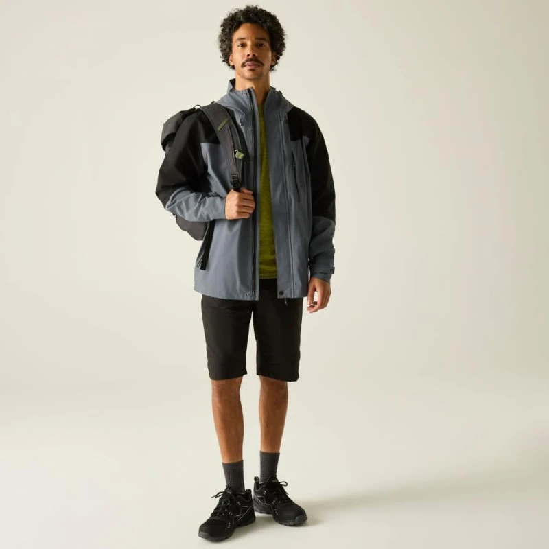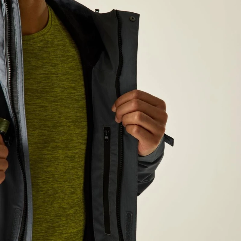 Férfi esőkabát 30000 mm vízálló, Prémium férfi vízálló héjkabát – ISOTEX 30000 membrán, 30 000 g/m?/24h légáteresztés, újrahasznosított stretch ripstop, Ez a technikai férfi héjkabát vízálló és légáteresztő ISOTEX 30000 membránnal készült, 100% újrahasznosított poliészter stretch ripstop anyagból. A kimagasló, 30 000 g/m?/24 óra légáteresztési teljesítmény intenzív mozgás közben is optimális komfortot biztosít. A tartós vízlepergető bevonat és a ragasztott varratok teljes körû vízálló védelmet nyújtanak, míg a technikai kialakítás extrém időjárási körülményekhez lett tervezve., Főbb jellemzők:, Vízálló, légáteresztő ISOTEX 30000 újrahasznosított 100% poliészter stretch ripstop anyag, Légáteresztési érték: 30 000 g/m?/24 óra, Tartós vízlepergető bevonat, Ragasztott varratok a teljes vízálló védelemért, Beépített, technikai kialakítású, merevített sildes kapucni állítókkal, Elülső középső cipzár vízelvezető csatornával, Belső cipzáras biztonsági zseb, 2 alsó zseb, 2 mellzseb, Állítható mandzsetta, Állítható, gumizsinóros alsó szegély, Ajánlott: Férfi vízálló túrakabátként ideális túrázáshoz, trekkinghez, hegymászáshoz és intenzív szabadtéri programokhoz szélsőséges időjárási körülmények között. Kiváló választás esős, szeles környezetben, ahol fontos a maximális vízállóság és a kiemelkedő légáteresztés., Fenntarthatóság: Az újrahasznosított poliészter alapanyag csökkenti a környezeti terhelést, miközben magas technikai teljesítményt biztosít. A tartós konstrukció hosszú élettartamot garantál, minimalizálva a gyakori cseréből eredő környezeti hatásokat.