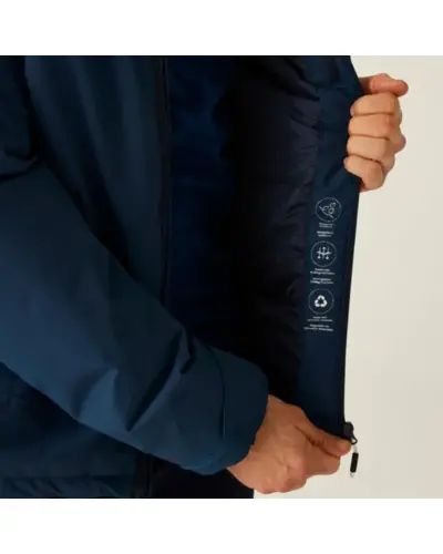 Férfi 10.000 mm bélelt kabát, Ez a kiváló minőségû dzseki Isotex 10000 technológiával készült, amely nemcsak vízálló (ragasztott varrásokkal a teljes védelemért), hanem kimagaslóan lélegző is (10 000g/m?/24 óra értékkel), így aktív mozgás közben is komfortos viseletet biztosít., Anyag: 100% poliészter, puha tapintású, peached felülettel – 120g/m?, Külső réteg: Tartós vízlepergető bevonat, Bélés: Újrahasznosított, pehelytapintású Warmloft szintetikus szigetelés – 100g/m?, Belső kialakítás: Bélelt, steppelt panelek a még jobb hőtartásért, Funkcionális részletek:, – Állítható, fix kapucni, – Elülső cipzár vízelvezető csatornával, – 2 cipzáras oldalzseb, – Belső cipzáras biztonsági zseb, – Állítható mandzsetták, – Húzózsinórral szabályozható alsó szegély, A dzseki újrahasznosított anyagokból készült, így nemcsak funkcionális, de fenntartható döntés is., Ideális viselet túrázáshoz, városi sétákhoz vagy bármilyen kültéri tevékenységhez – ahol a védelem és a kényelem egyszerre fontos.