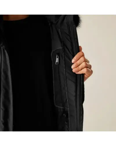 Női télikabát, Női meleg, téli parka kabát – stílus, kényelem és fenntarthatóság egyben, Ez a prémium minőségû női parka tökéletes választás hideg, csapadékos napokra. A vízlepergető micro poplin külső és a 230 g-os újrahasznosított Thermoguard szigetelés gondoskodik a melegségről és a szárazságról – kompromisszumok nélkül., A levehető, mûszőrme szegélyes kapucni divatos megjelenést biztosít, míg a karcsúsítható derék nőies szabást kölcsönöz. A raglánujjak kényelmes mozgást tesznek lehetővé, az elülső kétirányú cipzár, a rejtett patentos zsebek, valamint a belső biztonsági zseb praktikus részletekkel teszik teljessé ezt az elegáns és funkcionális darabot., 100% poliészter micro poplin külső anyag (84 g/m?), Vízlepergető kivitel, 230 g-os újrahasznosított Thermoguard szigetelés, 100% poliészter taft bélés, Levehető mûszőrme szegélyes, állítható kapucni, Kétirányú cipzár az elülső részen, Belső biztonsági zseb, 2 alsó zseb rejtett patentos zárással, Állítható húzózsinóros derékrész, Raglán ujjak a nagyobb kényelemért, Újrahasznosított anyagból készült, ? Kényelmes és meleg – tökéletes a hideg hónapokra, ?? Környezetbarát döntés – újrahasznosított anyagokból