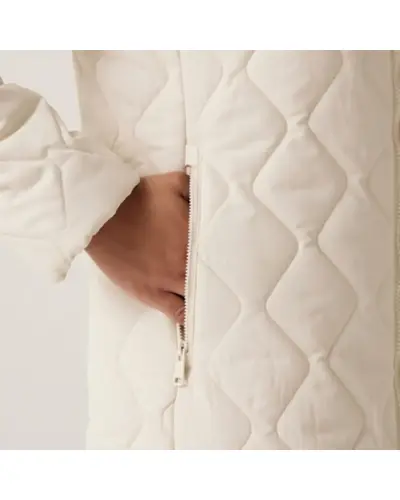 Női bélelt steppelt kabát, Újrahasznosított 100% poliészter vízlepergető baffle mikropoplin anyag, Közepes súlyú újrahasznosított Thermoguard szigetelés, 100% poliészter taft bélés, Belső biztonsági zseb, Beépített kapucni állítható pántokkal és mûszőrme szegéllyel, Kétirányú középső cipzár, 2 alsó cipzáras zseb, Ez a kabát ideális választás a hideg és nedves időjárásra, kényelmet és meleget biztosítva. Az újrahasznosított poliészter baffle mikropoplin anyag vízlepergető, így megvéd az esőtől és nedvességtől. A közepes súlyú Thermoguard szigetelés biztosítja a szükséges meleget. A kapucni állítható pántokkal és mûszőrme szegéllyel van ellátva, így extra stílust és védelmet nyújt a hideg ellen. A praktikus kétirányú cipzár megkönnyíti a kabát használatát, míg a két alsó cipzáras zseb és a belső biztonsági zseb lehetőséget biztosít a fontos dolgok tárolására.