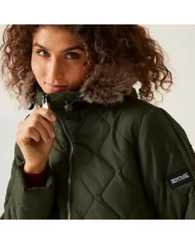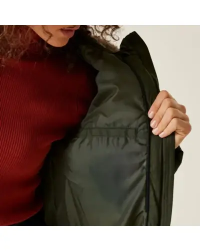 Női bélelt steppelt kabát, Újrahasznosított 100% poliészter vízlepergető baffle mikropoplin anyag, Közepes súlyú újrahasznosított Thermoguard szigetelés, 100% poliészter taft bélés, Belső biztonsági zseb, Beépített kapucni állítható pántokkal és mûszőrme szegéllyel, Kétirányú középső cipzár, 2 alsó cipzáras zseb, Ez a kabát ideális választás a hideg és nedves időjárásra, kényelmet és meleget biztosítva. Az újrahasznosított poliészter baffle mikropoplin anyag vízlepergető, így megvéd az esőtől és nedvességtől. A közepes súlyú Thermoguard szigetelés biztosítja a szükséges meleget. A kapucni állítható pántokkal és mûszőrme szegéllyel van ellátva, így extra stílust és védelmet nyújt a hideg ellen. A praktikus kétirányú cipzár megkönnyíti a kabát használatát, míg a két alsó cipzáras zseb és a belső biztonsági zseb lehetőséget biztosít a fontos dolgok tárolására.