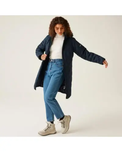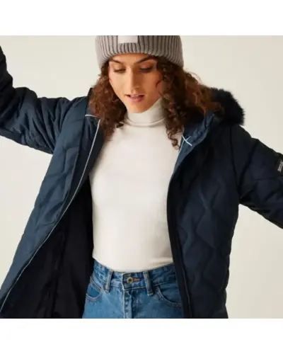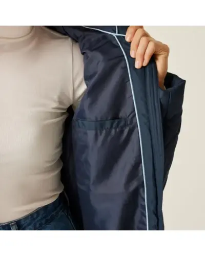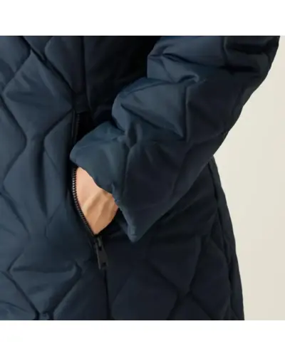 Női bélelt steppelt kabát, Újrahasznosított 100% poliészter vízlepergető baffle mikropoplin anyag, Közepes súlyú újrahasznosított Thermoguard szigetelés, 100% poliészter taft bélés, Belső biztonsági zseb, Beépített kapucni állítható pántokkal és mûszőrme szegéllyel, Kétirányú középső cipzár, 2 alsó cipzáras zseb, Ez a kabát ideális választás a hideg és nedves időjárásra, kényelmet és meleget biztosítva. Az újrahasznosított poliészter baffle mikropoplin anyag vízlepergető, így megvéd az esőtől és nedvességtől. A közepes súlyú Thermoguard szigetelés biztosítja a szükséges meleget. A kapucni állítható pántokkal és mûszőrme szegéllyel van ellátva, így extra stílust és védelmet nyújt a hideg ellen. A praktikus kétirányú cipzár megkönnyíti a kabát használatát, míg a két alsó cipzáras zseb és a belső biztonsági zseb lehetőséget biztosít a fontos dolgok tárolására.