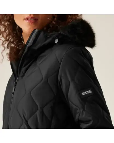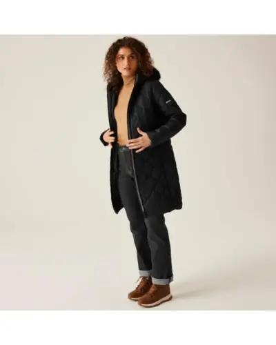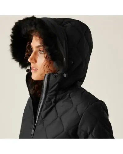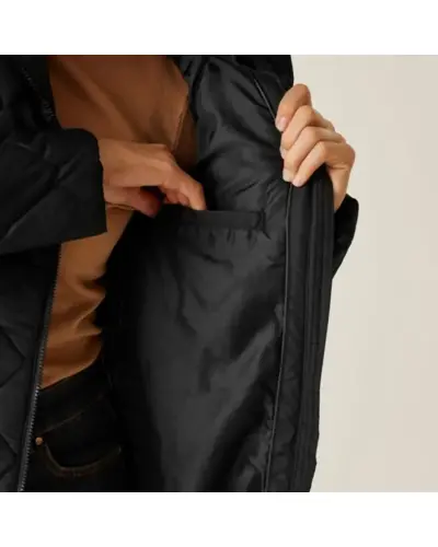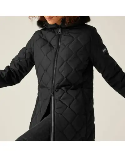 Női bélelt steppelt kabát, Újrahasznosított 100% poliészter vízlepergető baffle mikropoplin anyag, Közepes súlyú újrahasznosított Thermoguard szigetelés, 100% poliészter taft bélés, Belső biztonsági zseb, Beépített kapucni állítható pántokkal és mûszőrme szegéllyel, Kétirányú középső cipzár, 2 alsó cipzáras zseb, Ez a kabát ideális választás a hideg és nedves időjárásra, kényelmet és meleget biztosítva. Az újrahasznosított poliészter baffle mikropoplin anyag vízlepergető, így megvéd az esőtől és nedvességtől. A közepes súlyú Thermoguard szigetelés biztosítja a szükséges meleget. A kapucni állítható pántokkal és mûszőrme szegéllyel van ellátva, így extra stílust és védelmet nyújt a hideg ellen. A praktikus kétirányú cipzár megkönnyíti a kabát használatát, míg a két alsó cipzáras zseb és a belső biztonsági zseb lehetőséget biztosít a fontos dolgok tárolására.