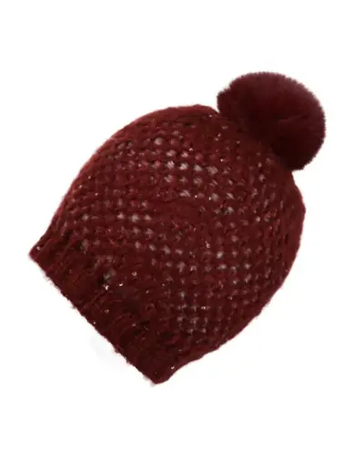 női sapka , 100% kötött akril, Mûszőrme bojt, 100% poliészter polár bélés