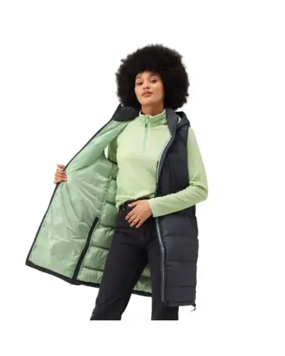 Női steppelt mellény, 100% poliészter anyag, Tartós vízlepergető felület, Feather Free – prémium minőségû újrahasznosított szintetikus pehelyszigetelés, Belső zseb, 2 cipzáras alsó zseb, két oldalán cipzáras nyílás