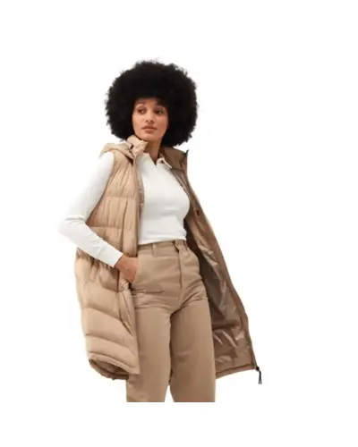 Női steppelt mellény, 100% poliészter anyag, Tartós vízlepergető felület, Feather Free – prémium minőségû újrahasznosított szintetikus pehelyszigetelés, Belső zseb, 2 cipzáras alsó zseb, két oldalán cipzáras nyílás