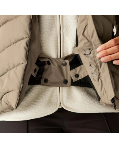 Női prémium síkabát 15.000, Prémium női softshell síkabát vízálló, légáteresztő, újrahasznosított anyagból, Swarovski kristályos díszítéssel, Ez a luxusminőségû női sídzseki Ared 15/15 membránnal készült, amely 15 000 mm vízállóságot és 15 000 g/m?/24h légáteresztést biztosít, így tökéletes védelmet nyújt a nedves, havas és szeles időjárásban. Újrahasznosított, magas hőszigetelésû bélése melegen tart a hideg téli napokon, míg Swarovski kristályos cipzárhúzói elegáns, prémium megjelenést kölcsönöznek. Teljes sífelszereltséggel rendelkezik síbérlet-tartó, fix hófogó, belső tárolózsebek , így ideális választás síeléshez, snowboardozáshoz és téli szabadtéri programokhoz., Vízálló és légáteresztő softshell anyag Ared 15/15 (15 000 mm / 15 000 g/m?/24h), Swarovski kristályos cipzárhúzók a prémium megjelenésért, Teljes sífunkció: síbérlet-zseb, fix hófogó, Levehető, állítható kapucni, Újrahasznosított, magas hőszigetelésû bélés, Tartós vízlepergető (DWR) felületkezelés, Meleg belső ujjmandzsetták a hő megtartásáért, Állítható rugalmas alsó szegély, Belső cipzáras zseb és hálós tároló szemüvegtörlő kendővel, PFC-, PFOA-, PFOS-mentes környezetbarát kivitel, Ajánlott: prémium női síkabát és női sídzseki síeléshez, snowboardozáshoz, téli sportokhoz, havas kirándulásokhoz és hideg időben történő városi viselethez.