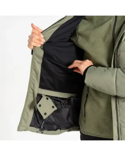 Női síkabát 10000 mm vízálló és lélegző, Újrahasznosított vízálló és lélegző stretch anyag - ARED 10/10, Kiváló vízlepergető bevonat, Mentes PFC, PFOA, PFOS vegyületektől, Újrahasznosított, magas hőtartású töltet, Teljes sífelszerelés kompatibilitás (beleértve a belső bélésbe rejtett síbérlet zsebet és a levehető, gél tapadós hófogót), Levehető kapucni állítható pánttal és eltávolítható mûszőrme szegéllyel, Könnyen tisztítható, Fémhatású középső cipzár belső cipzárral és állvédővel, Meleg belső ujjmandzsetták, 2 alsó zseb fémhatású cipzárral, Állítható húzózsinóros alsó szegély, 1 belső hálós zseb, amely tartalmazza a szemüveglencse tisztítókendőt, Újrahasznosított stretch hátsó panel steppelt design részlettel, Swarovski kristályokkal díszített jelvények és cipzárhúzók, Fedezd fel a legújabb sídzsekinket, amely ötvözi a stílust és a funkcionalitást! Az újrahasznosított anyagból készült, vízálló és lélegző ARED 10/10 anyag gondoskodik a szárazságról és a kényelemről, míg a hőszigetelő töltet biztosítja a melegséget. A teljes sífelszerelés kompatibilitás, a levehető kapucni és a praktikus zsebek minden igényt kielégítenek a sípályán. A Swarovski kristályokkal díszített részletek és a prémium minőségû anyagok garantálják, hogy kitûnj a tömegből. Válaszd ezt a sokoldalú és elegáns sídzsekit a tökéletes téli élményért!