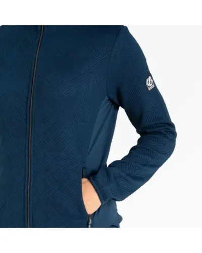 Női pulóver, Anyag: Poliészter textúrázott mintás szövet, Oldalpanelek: Rugalmas oldalpanelek a kényelem és mozgásszabadság érdekében, Gallér, mandzsetta és szegély: Rugalmas szegéllyel ellátva, Zsebek: 2 alsó zseb fém hatású cipzárral, Ez a felső poliészter textúrázott mintás anyagból készült, amely modern és stílusos megjelenést biztosít. Az oldalpanelek rugalmas anyagból készültek, így maximális kényelmet és mozgásszabadságot nyújtanak. A rugalmas szegéllyel ellátott gallér, mandzsetta és szegély garantálják a tökéletes illeszkedést. A két alsó zseb fém hatású cipzárral praktikus tárolási lehetőséget kínál, így ez a felső ideális választás mindennapi viseletre és aktív tevékenységekhez is.