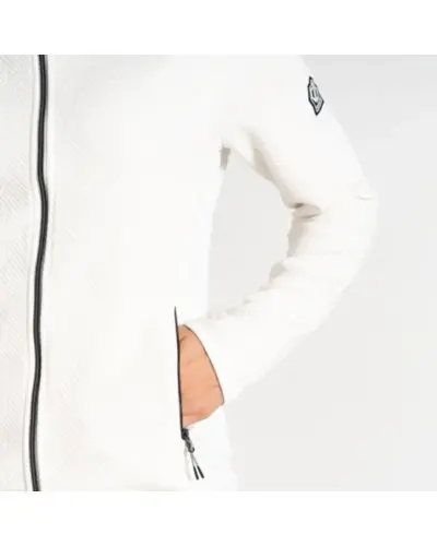 Női pulóver, Anyag: Poliészter textúrázott mintás szövet, Oldalpanelek: Rugalmas oldalpanelek a kényelem és mozgásszabadság érdekében, Gallér, mandzsetta és szegély: Rugalmas szegéllyel ellátva, Zsebek: 2 alsó zseb fém hatású cipzárral, Ez a felső poliészter textúrázott mintás anyagból készült, amely modern és stílusos megjelenést biztosít. Az oldalpanelek rugalmas anyagból készültek, így maximális kényelmet és mozgásszabadságot nyújtanak. A rugalmas szegéllyel ellátott gallér, mandzsetta és szegély garantálják a tökéletes illeszkedést. A két alsó zseb fém hatású cipzárral praktikus tárolási lehetőséget kínál, így ez a felső ideális választás mindennapi viseletre és aktív tevékenységekhez is.