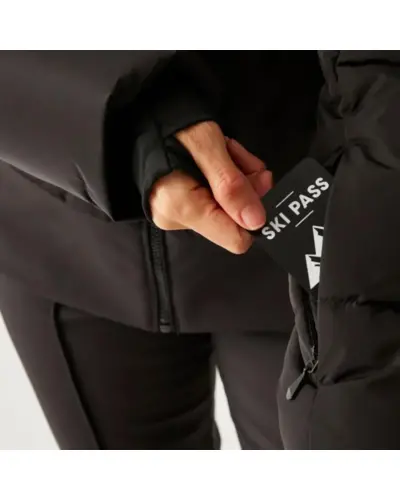 Női prémium síkabát 15.000, Prémium női softshell síkabát vízálló, légáteresztő, újrahasznosított anyagból, Swarovski kristályos díszítéssel, Ez az exkluzív női síkabát Ared 15/15 membránnal készült, amely 15 000 mm vízállóságot és 15 000 g/m?/24h légáteresztést biztosít, így megbízható védelmet nyújt a hó, szél és hideg ellen. A Swarovski kristályos díszítés elegáns, prémium megjelenést kölcsönöz, míg a teljes sífunkciós felszereltség beleértve a síbérlet-zsebet, belső tárolózsebet és hővédő részleteket a maximális kényelmet garantálja. Ideális választás síeléshez, snowboardozáshoz, téli túrákhoz és aktív szabadtéri programokhoz., Újrahasznosított, vízálló és légáteresztő anyag Ared 15/15 (15 000 mm / 15 000 g/m?/24h), Swarovski kristályos díszítés a kapucninyílásnál, jelvényeken és cipzárhúzókon, Kritikus varrások vízálló ragasztása a fokozott védelemért, Tartós vízlepergető (DWR) felületkezelés, Levehető, állítható kapucni, Síbérlet-zseb az ujjon, Puha polár gallérbélés a nagyobb hőérzetért, Meleg belső ujjmandzsetták, Belső hálós tárolózseb szemüvegtörlő kendővel, Kopásálló, hosszú élettartamra tervezett anyag, PFC-, PFOA-, PFOS-mentes kivitel, Kényelmes, laza szabás, Ajánlott: női síkabát és női sídzseki síeléshez, snowboardozáshoz, téli sportokhoz, havas kirándulásokhoz és hideg időben történő városi viselethez.